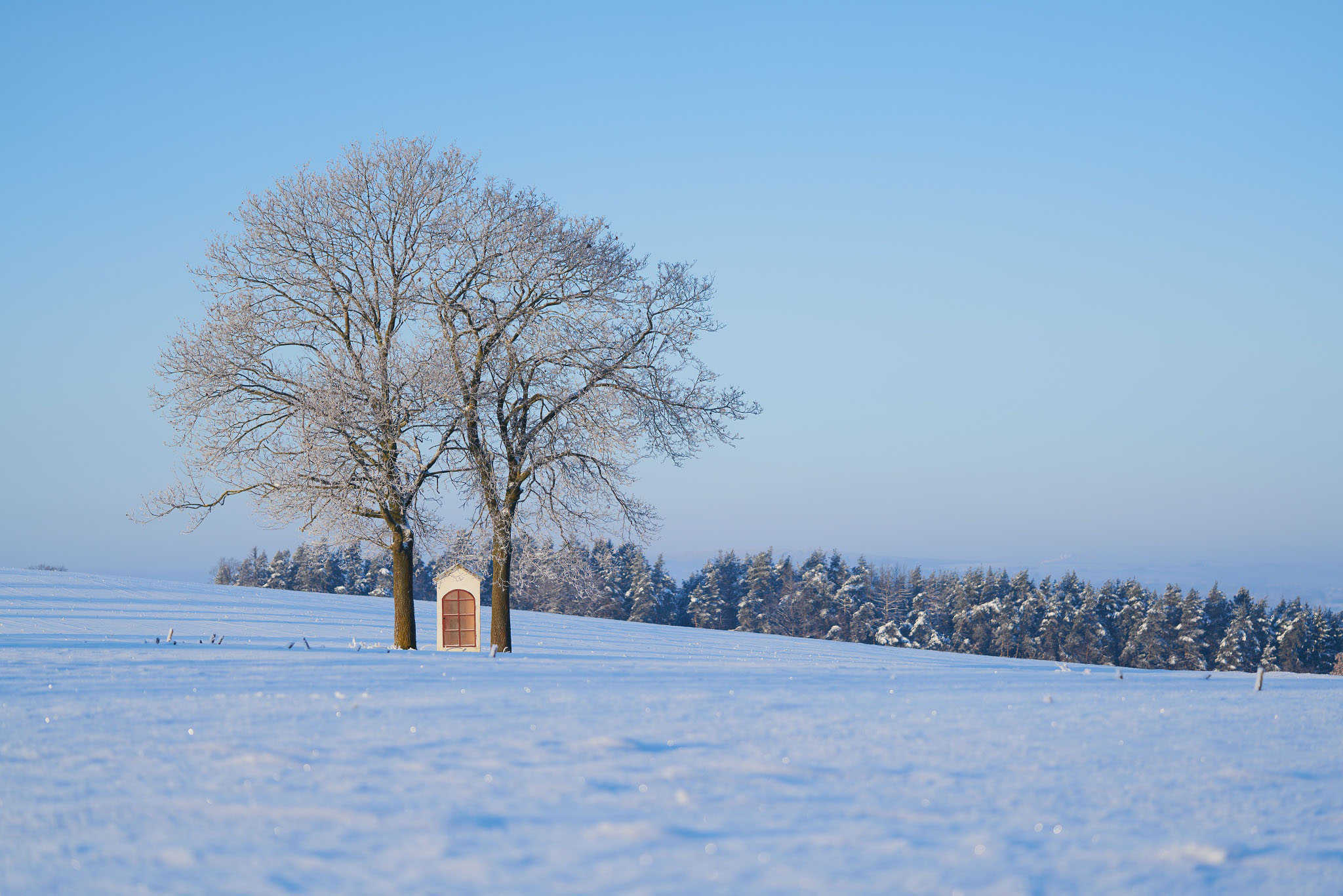 Odjezd v 5:30 hodin na ranní krajinářské focení. Při jasné obloze zamíříme nad údolí Želivky s kapličkou v polích a krásně poskládanými hřebínky kopců, které budeme fotit o modré a zlaté hodince. Bude-li pošmourno, využijeme místo toho ráno k fotografování krásné a fotogenické monumentální kamenné hráze Sedlické přehrady. Po snídani zamíříme k vyhlídkám na hrad Lipnici a k unikátním sochařským reliéfům ve skalách nad vodami několika zatopených lomů, ideálním pro foto krátkou i dlouhou expozicí. Odpoledne a v podvečer fotíme zimní scenerie krajiny Vysočiny s táhlými údolími a navrstvenými hřbítky kopců, s remízky, kapličkami a solitérními stromy. Nenecháme si ujít nejhezčí světlo o zlaté a modré hodince. Večer zakončíme fotografováním města a zámku ve Světlé či Ledči nad Sázavou.